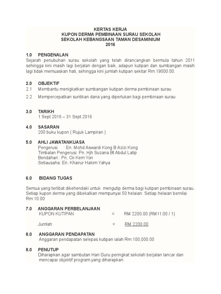 Kertas Kerja Pembinaan Surau Sekolah Doc