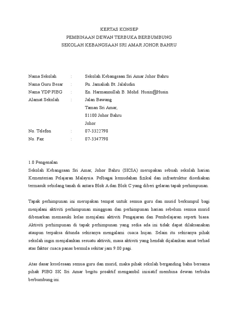 Kertas Konsep Pembinaan Dewan Terbuka Berbumbung Sksa Doc