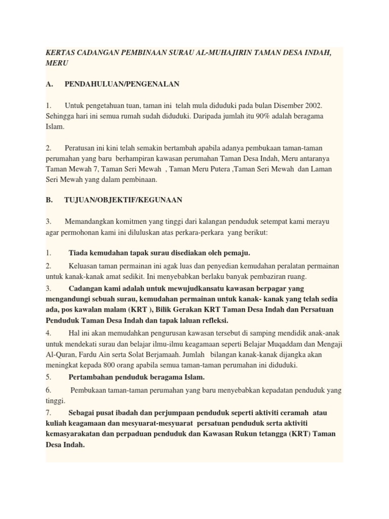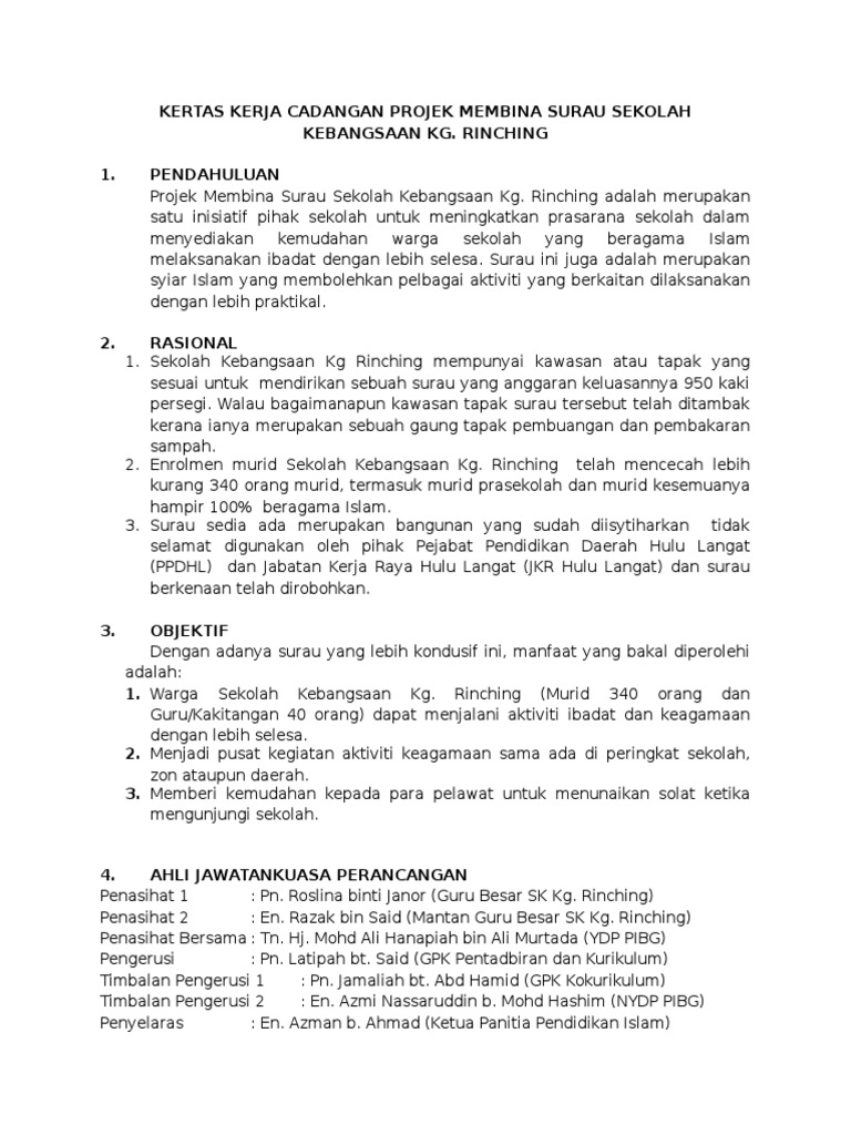 Dokuemnt Kertas Kerja Bina Surau Sekolah