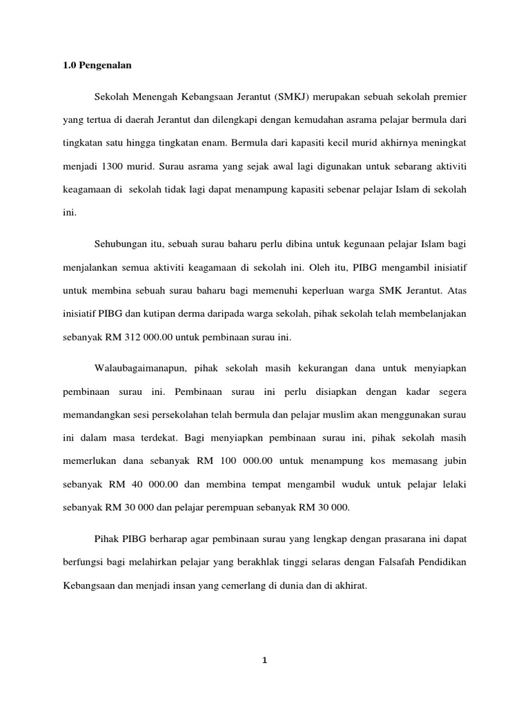 Kertas Kerja Pembinaan Surau Smk Jerantut