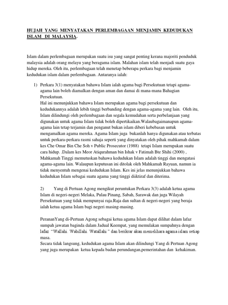 Agama Islam Perlembagaaan Persekutuan Dan Negara Malaysia
