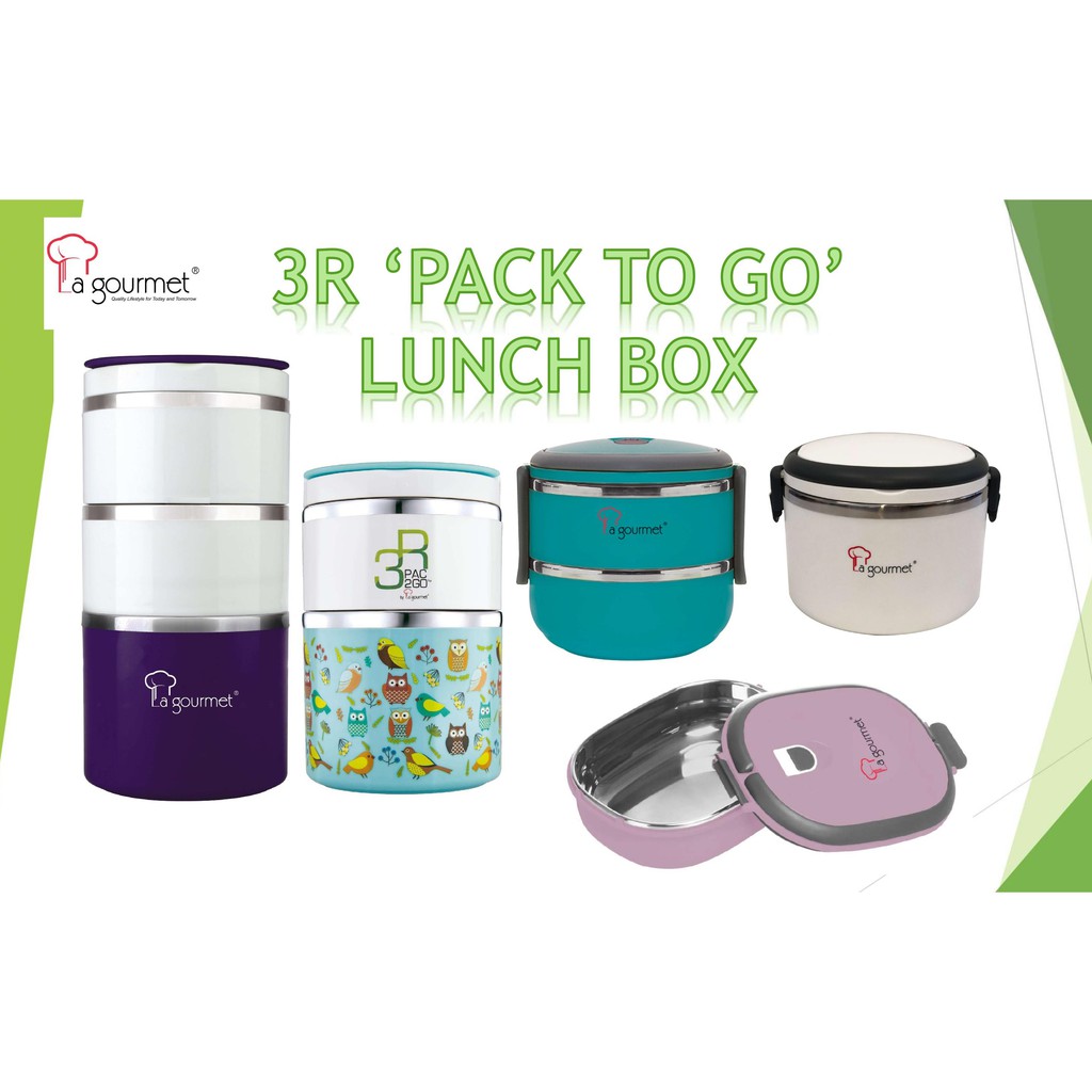 La Gourmet 3r Pack To Go Lunch Box With Stainless Steel Interior Shopee Singapore