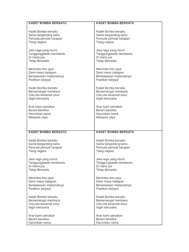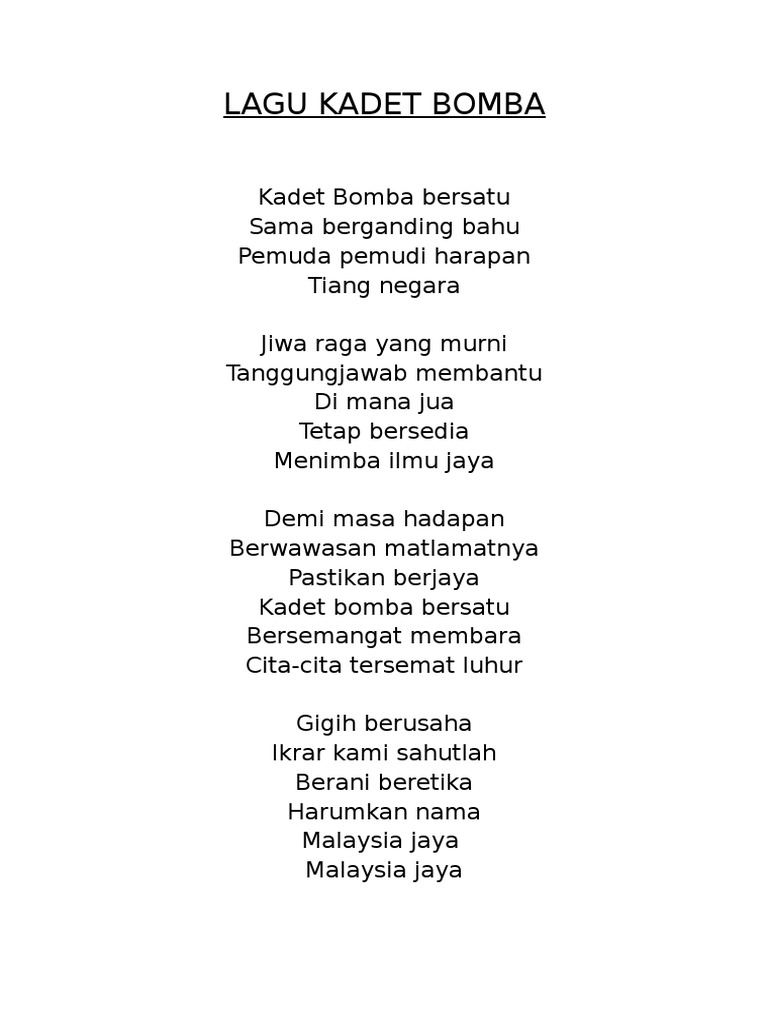 Lirik Lagu Kadet Bomba Dan Penyelamat Docx
