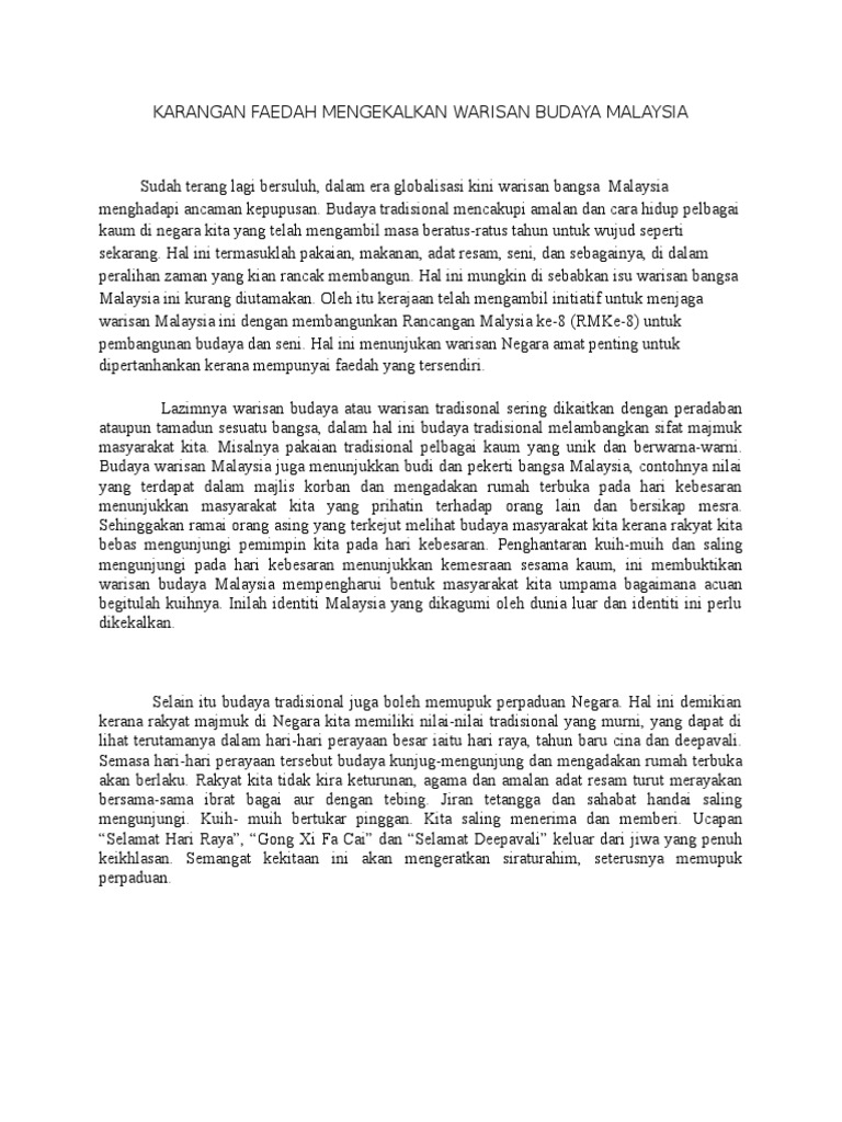 46127266 Karangan Faedah Mengekalkan Warisan Budaya Malaysia
