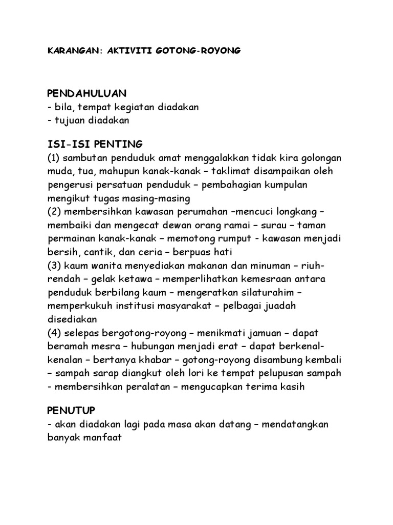 Karangan Laporan Aktiviti Gotong Royong Di Kawasan Perumahan