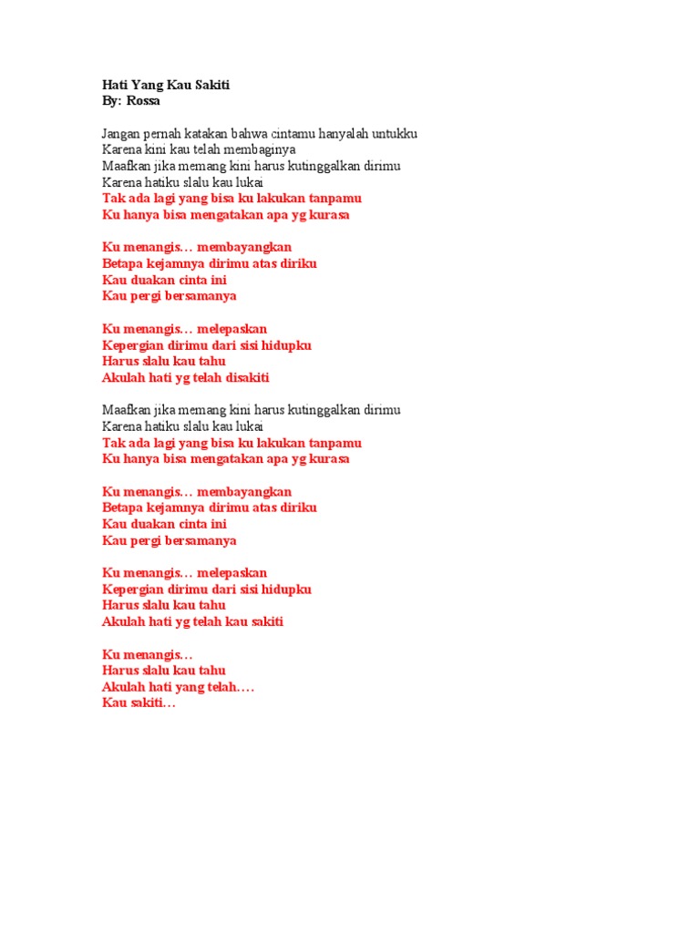 Lirik Lagu Hati Yang Kau Sakiti By Rossa Gejag