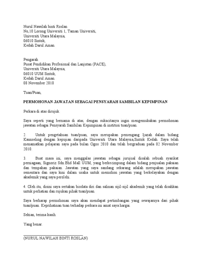 Surat Rasmi Permohonan Jawatan Pensyarah Surat R