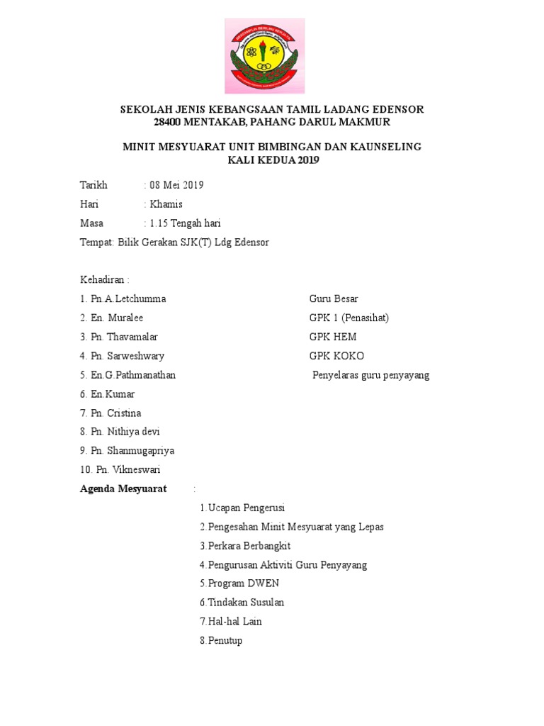 Contoh Minit Mesyuarat Kelab Bimbingan Dan Kaunseling