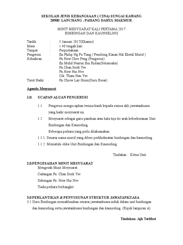 Minit Mesyuarat Unit Bimbingan Dan Kaunseling Kali Pertama 2017 Flip Book Pages 1 14 Pubhtml5