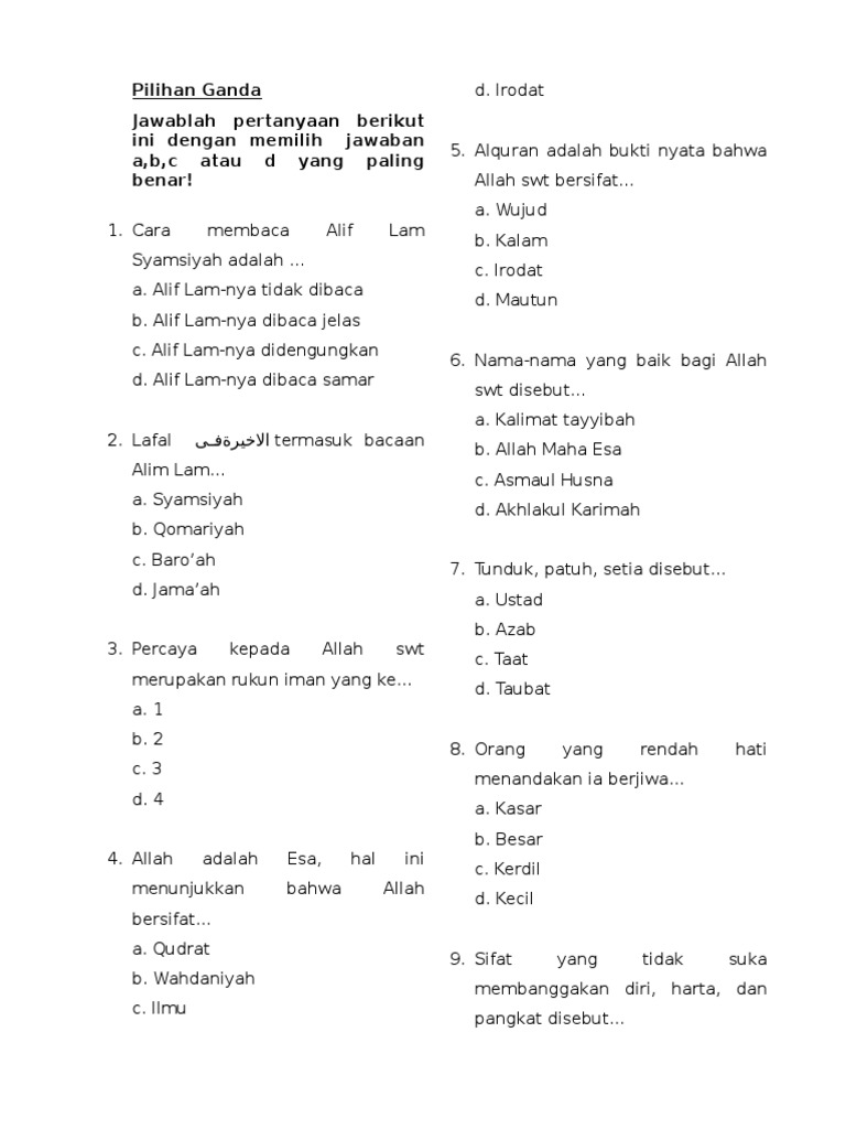 Soalutssdkelas5mapelakidahakhlakdankuncijawaban