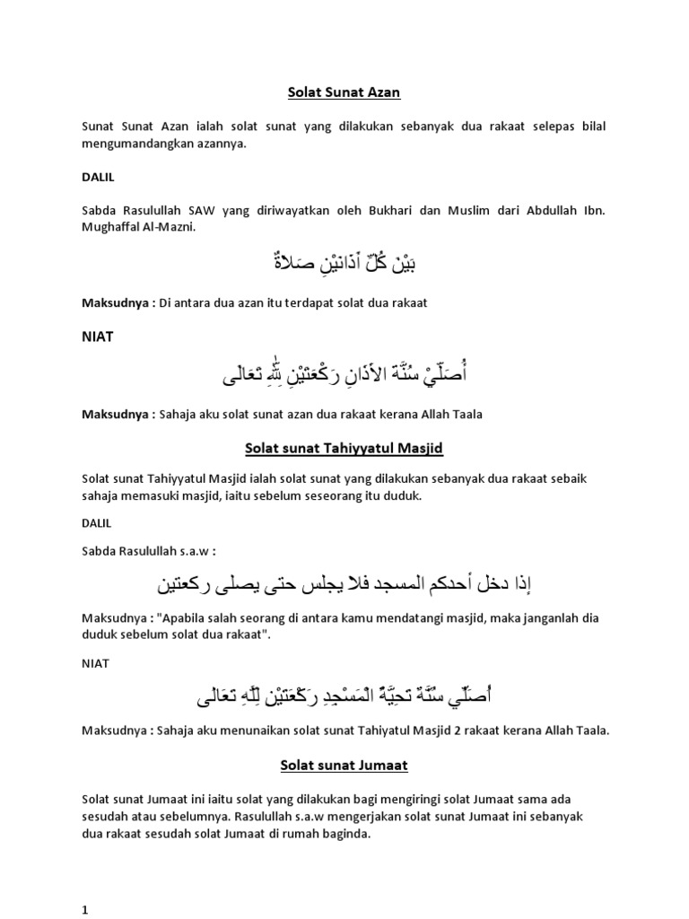 Niat Solat Sunat Sebelum Dan Selepas Solat Fardhu