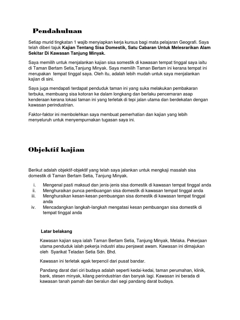 Kerja Kursus Geografi Tingkatan 1 Sisa Domestik Kawasan Kajian