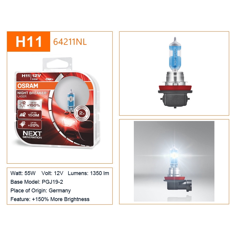 New Gen H11 Osram Night Breaker Laser 150 Bulbs 64211nl 12v 55w Germany Dot Ebay