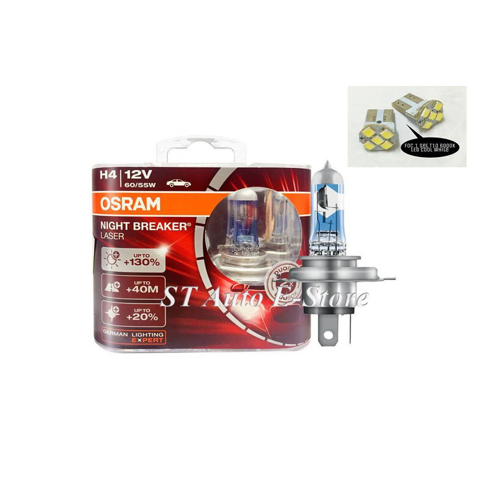 Osram Night Breaker Laser H4 130 Xenon White Headlight Car Bulbs Foc T10 Led Shopee Malaysia
