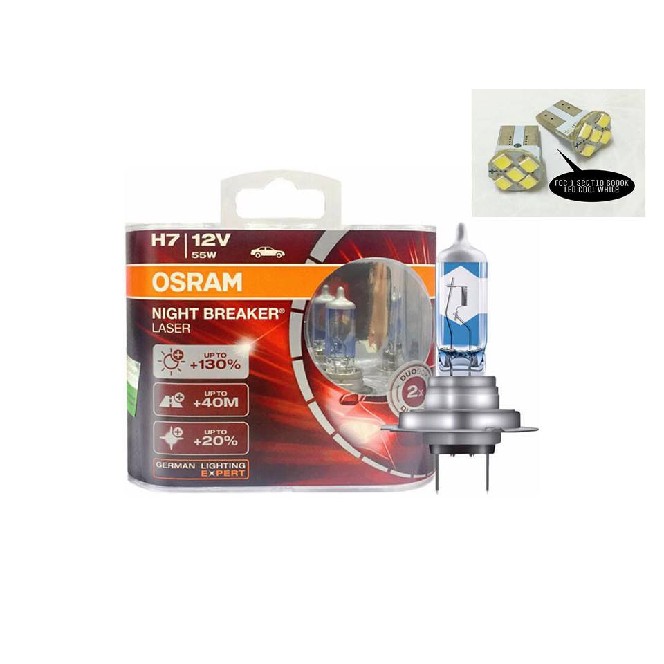 Osram Night Breaker Laser H7 130 Xenon White Headlight Car Bulbs Foc T10 Led Shopee Malaysia