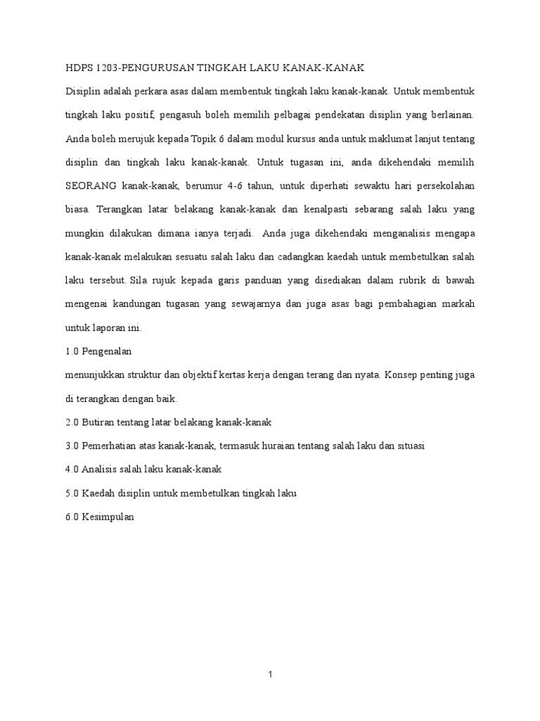 Hdps 1203 Pengurusan Tingkah Laku Kanak Kanak