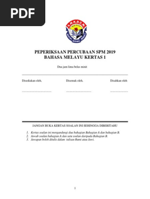 Peperiksaan Percubaan Spm 2019 Bahasa Melayu Kertas 1