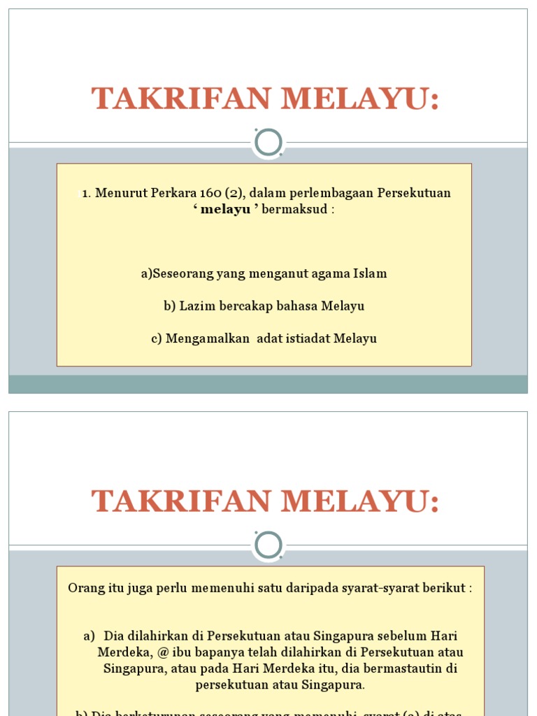 Impian Takrif Maksud Melayu Mengikut Perkara 160 2 Perlembagaan Persekutuan