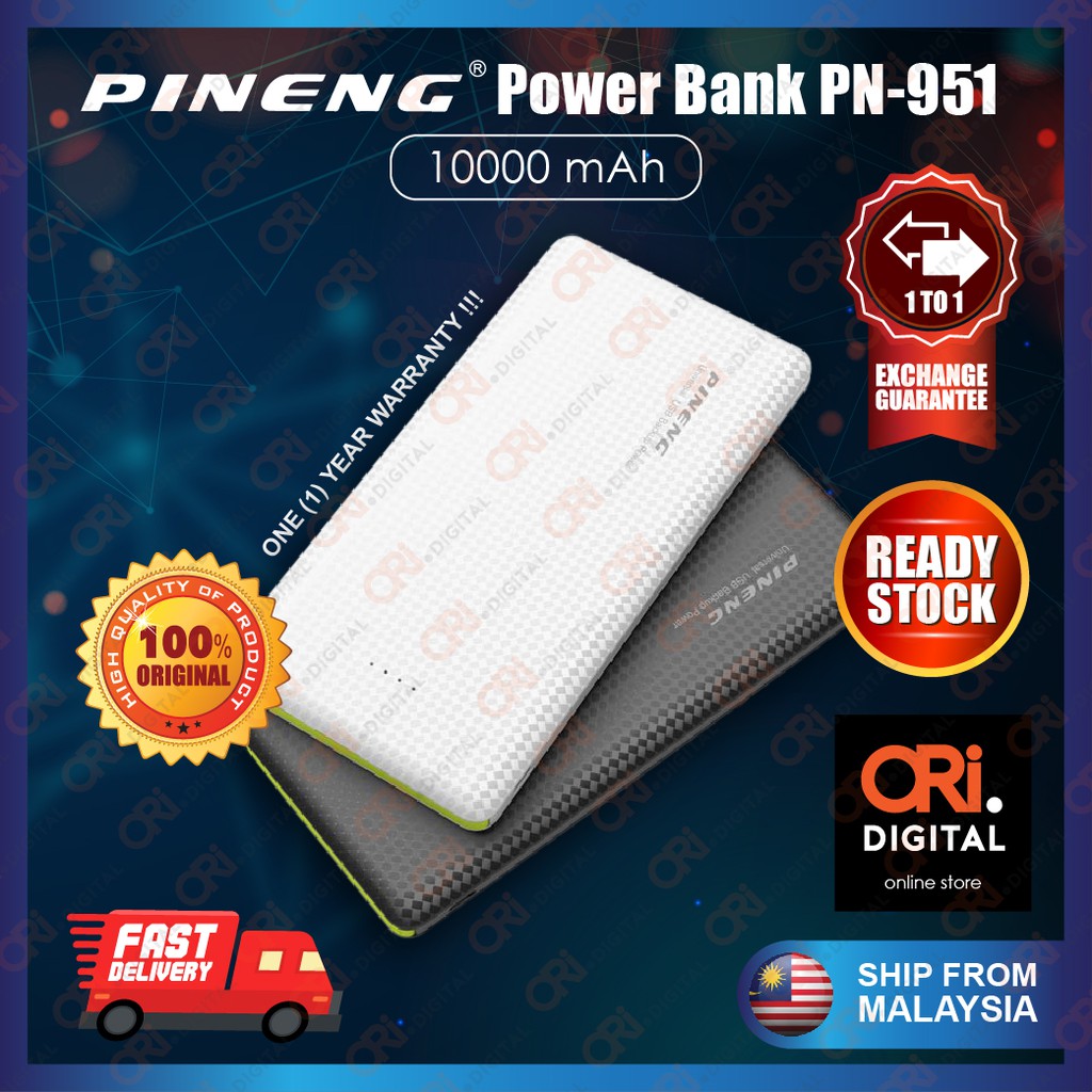 Original Pineng Pn 951 Pn951 Slim Power Bank Fast Charge High Speed Pn 951 10000 Mah Shopee Malaysia