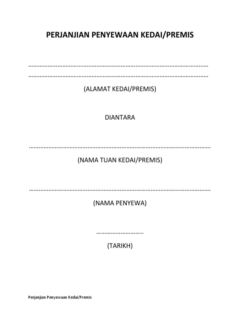 Perjanjian Sewa Kedai Dan Premis