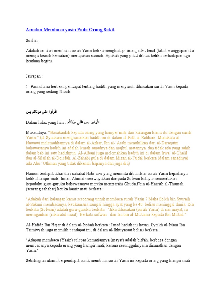 Amalan Membaca Yasin Pada Orang Sakit