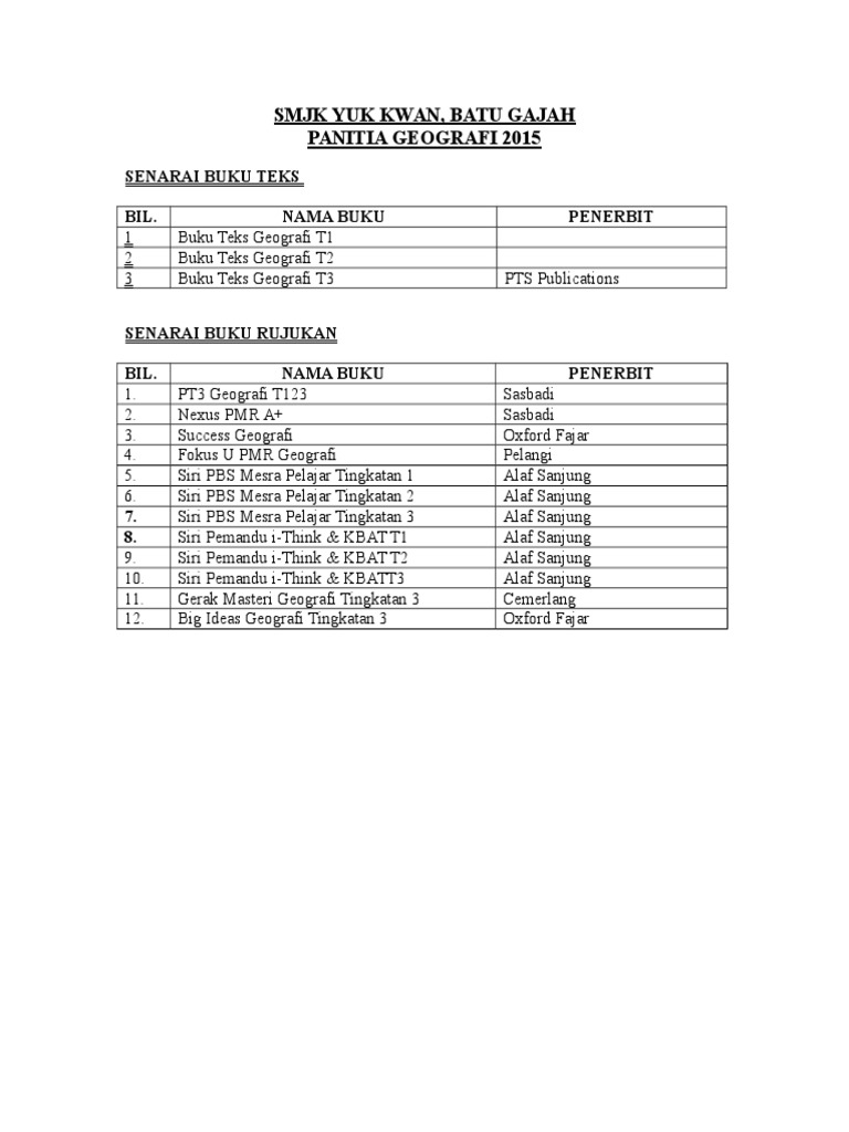 Spbt Smakt Senarai Buku Teks Tingkatan 3