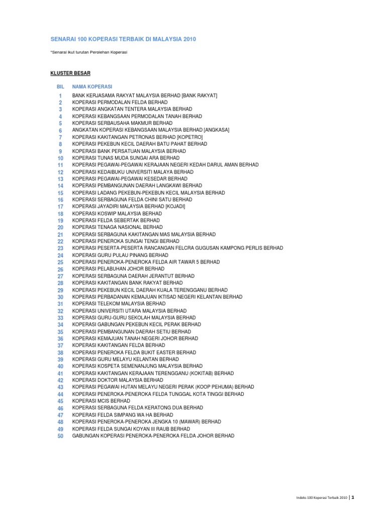 Download Senarai 100 Koperasi Terbaik Di Malaysia Free Online E Book