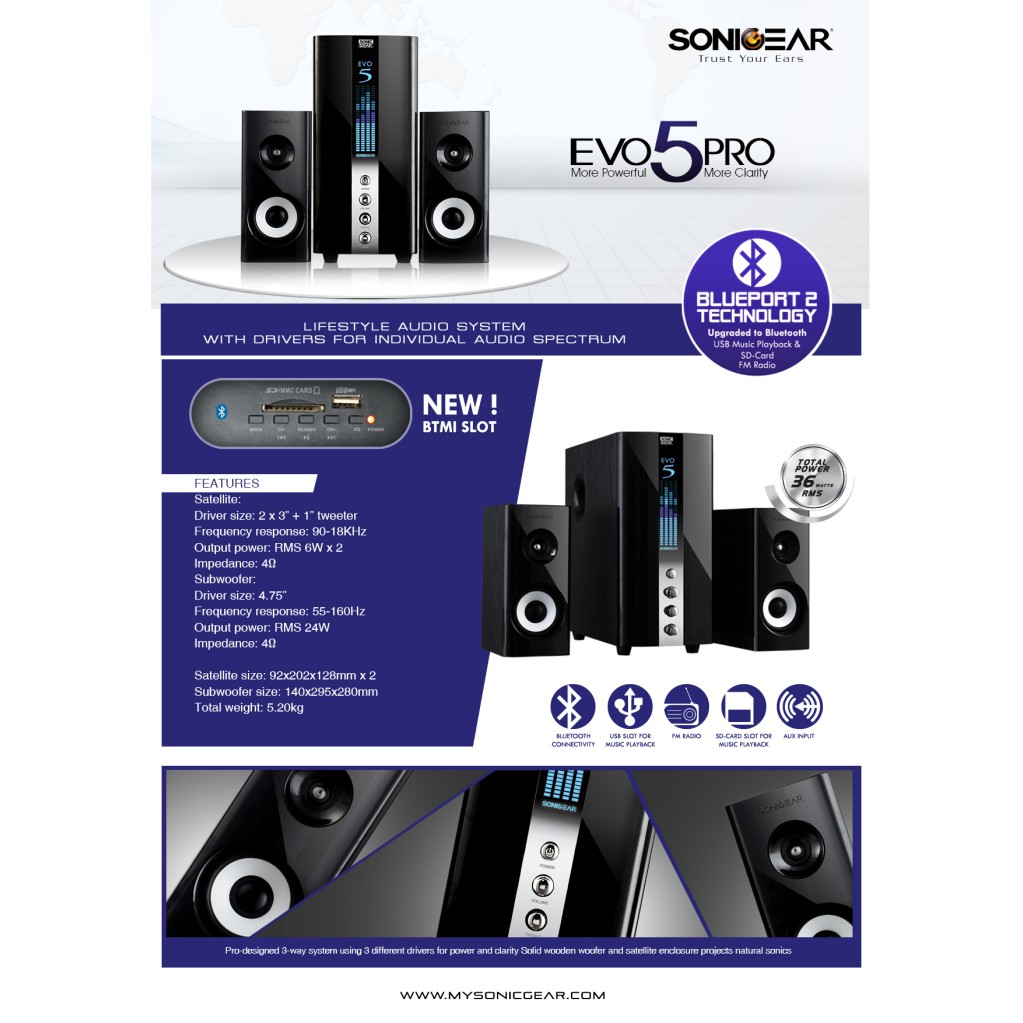 Sonicgear Evo5 Pro Btmi 2 1 Usb Bt Fm Speakers 72w Pc Speakers Ms Electronics