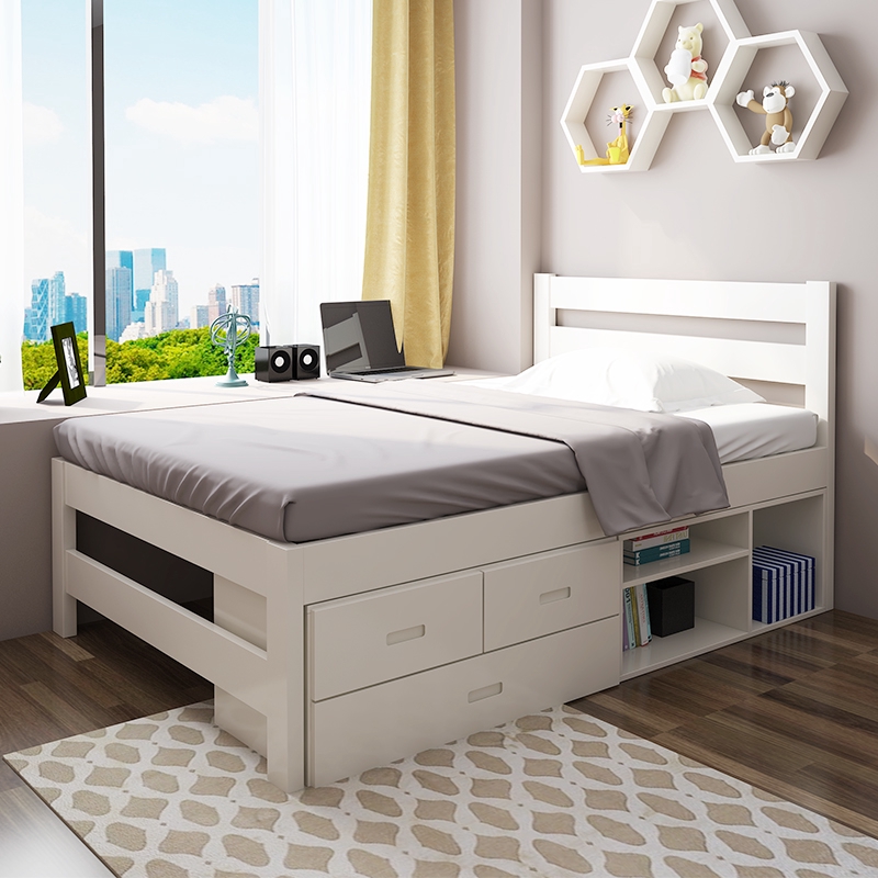 Solid Wood Strong Single Size Wooden Bed With Headboard Storage Compartment 3 Storage Drawer Underbed L2090mm X W1050mm X H1085mm Pre Order 2 Week Lazada