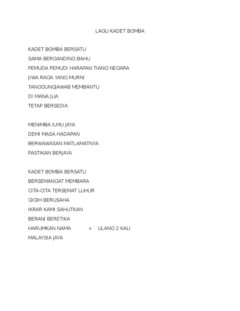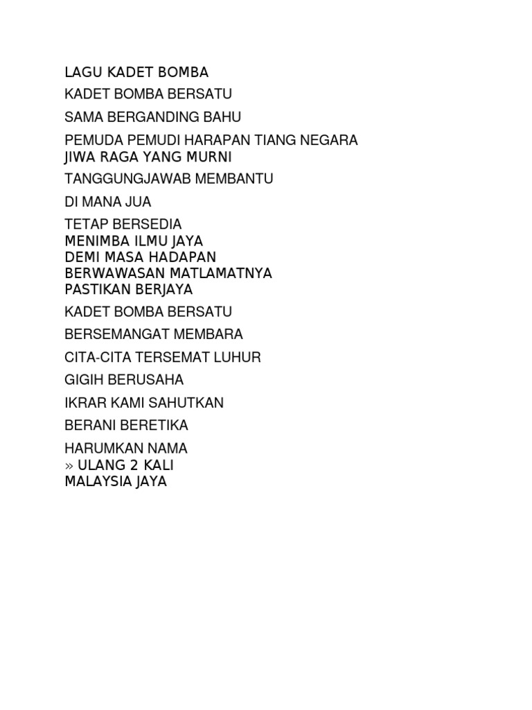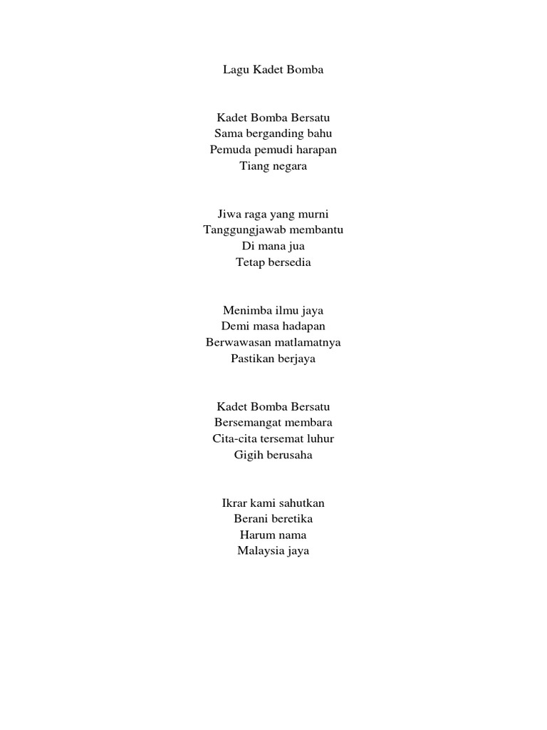 Lirik Lagu Kadet Bomba Dan Penyelamat Docx