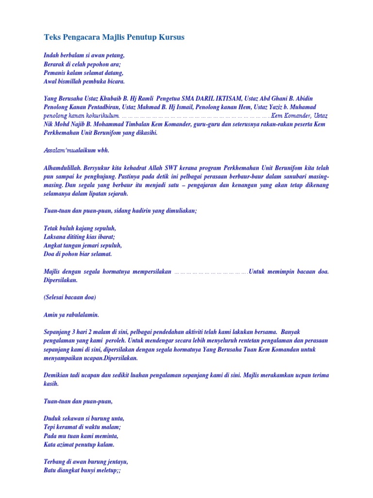 Doc Contoh Teks Ucapan Nc Majlis Perasmian Penutup Program Solehulhafiz Suhaimi Academia Edu