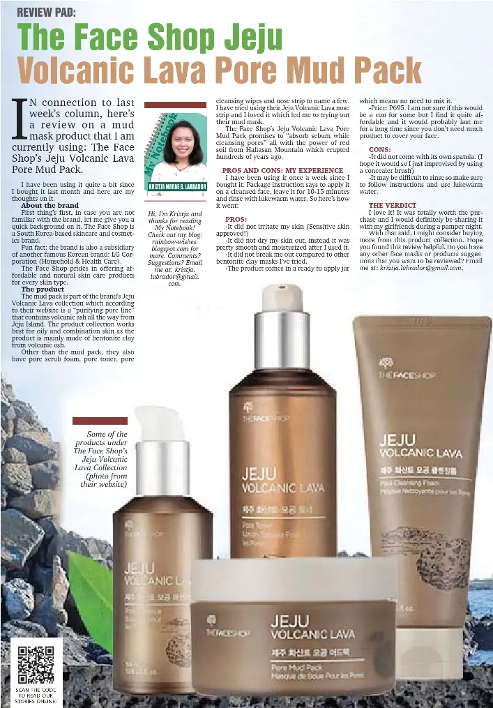 Review Pad The Face Shop Jeju Volcanic Lava Pore Mud Pack My Notebook