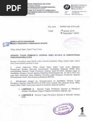 Senarai Tugas Pembantu Operasi Gred N11 N14 Di Kpm 1 Pdf