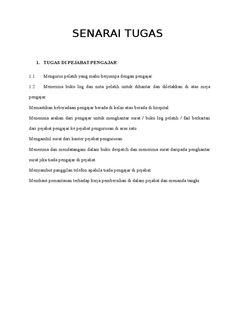 Senarai Tugas Pembantu Perawatan Kesihatan U11
