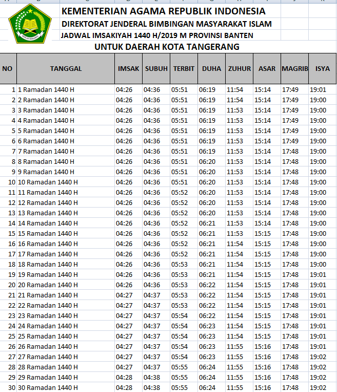 Jadwal Imsakiyah Tangerang 2019 Ilmusosial Id