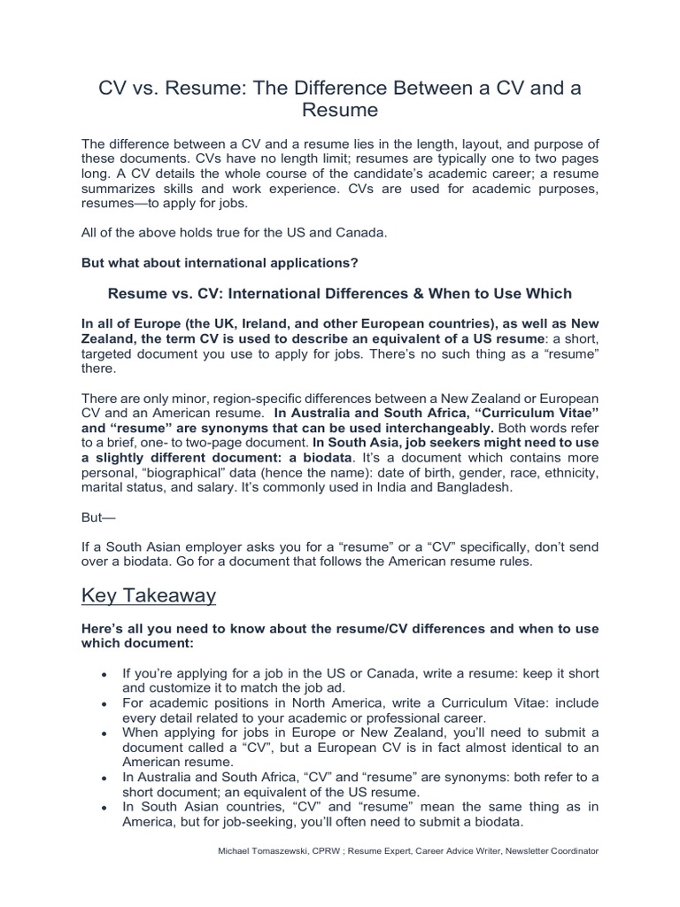 What Is The Difference Between A Cv And A Resume The Campus Career Coach