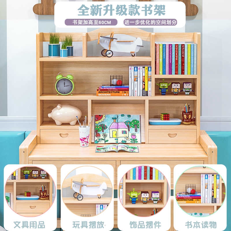 Full Solid Wood Children Study Table Child Desk Bookshelf Group Combine Pupil Desks And Chairs Household Write Tables Shopee Singapore